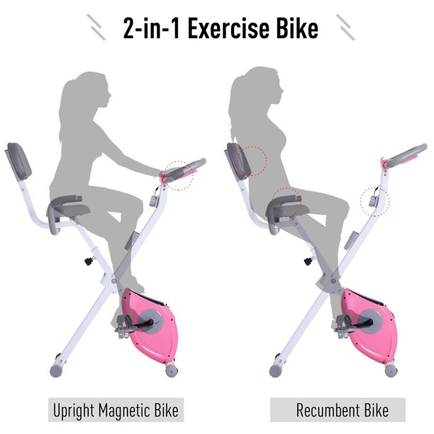 Soozier Foldable Exercise Bike With 8 Level Quiet Magnetic Resistance And Backrest Indoor Stationary Bike Upright Fitness X Bike With Tablet Holder Pink Walmart Ca